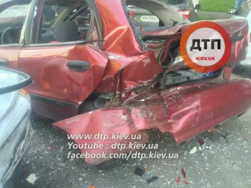 Водитель автомобиля Таврия, сев пьяным за руль, не справился с управлением и разбил в хлам четыре автомобиля. Сильно пострадал автомобиль Ланос: он получил удар с двух сторон. К сожалению, автомобиль восстановлению не подлежит. Водителя госпитализировала скорая. Об этом сообщает dtp.kiev.ua.