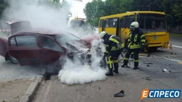 В Голосеевском районе города на проспекте Науки произошло серьезное ДТП, несколько человек госпитализированы в тяжелом состоянии. «Опель» внезапно выехал на встречную полосу, врезался в маршрутку и загорелся. Об этом сообщает dtp.kiev.ua.