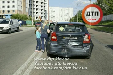 ДТП в Киеве: «Субару» на переходе протаранил «Додж» с детьми (фото)