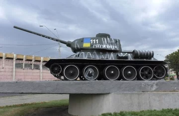 В Киеве парочка разрисовала танк Второй мировой (фото, видео)