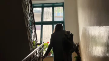 Дом находится на четвертом этаже пятиэтажного кирпичного дома общежития. Жилье имеет жилое состояние, в комнате есть умывальник, частично сохраненная мебель и базовая техника, включая холодильник и плиту.